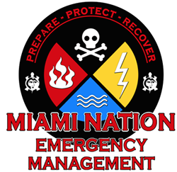 "The Mission of the Myaamia Emergency Management Department (MEMD) is to ensure the levels of protection necessary for life, property and the safety of Miami Nation Tribal members, employees, visitors and customers. The department is responsible for the development and maintenance of an integrated Tribal capability to prepare for, mitigate against, respond to and recover from the consequences of major disasters and emergencies regardless of cause. This department works in partnership with other Tribal, Federal, State and local agencies, volunteer organizations and the private sector."